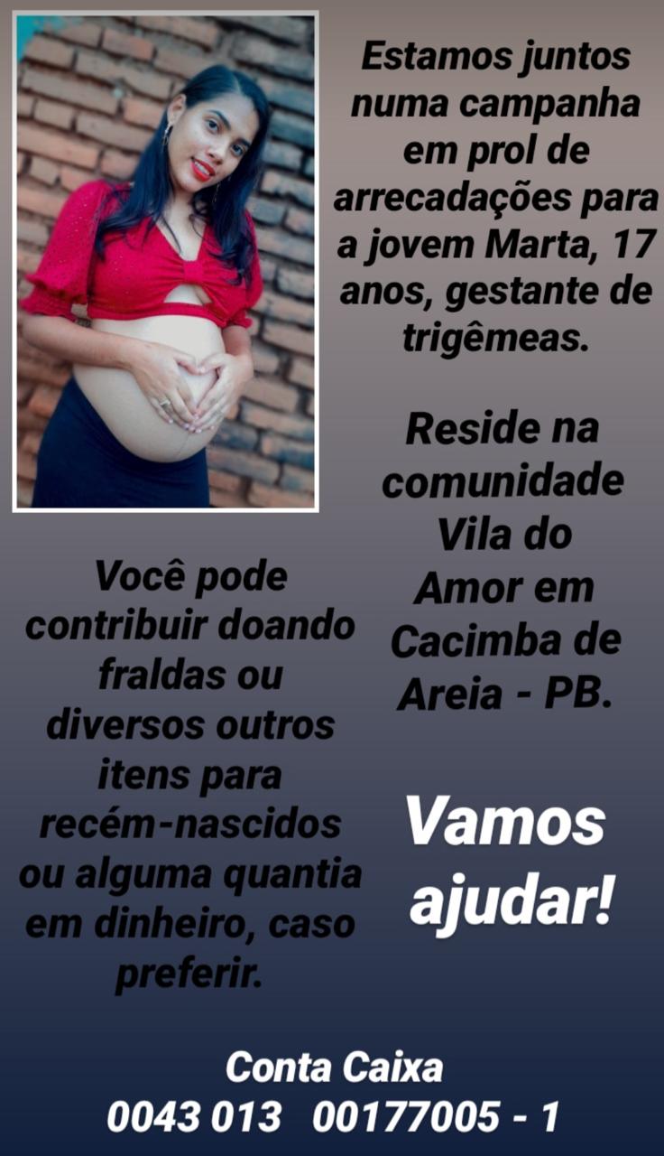 Sabendo da notícia que a jovem estava em uma gravidez de trigêmeas, seus amigos iniciaram uma campanha nas redes sociais, grupos de WhatsApp, pedindo doações para a família. Eles também disponibilizaram uma conta bancária da gestante, para quem quiser e puder fazer alguma doação.