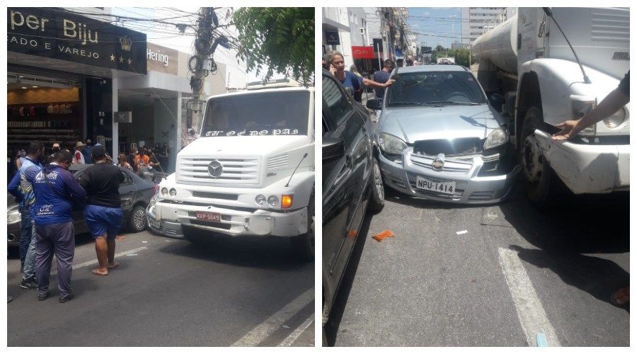 Vídeo: caminhão-pipa e carro colidem no centro de Patos, nesta terça (29)
