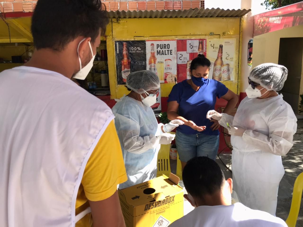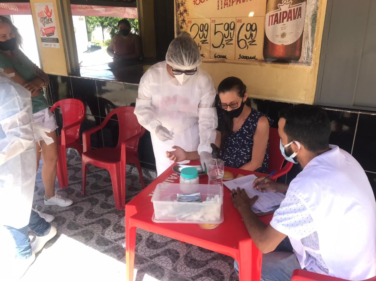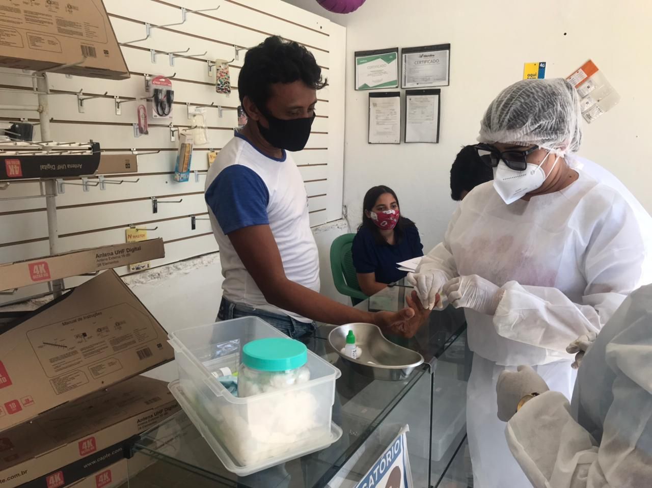Na oportunidade, os profissionais de saúde estão realizando visitas aos estabelecimentos comerciais, realizando os testes nos trabalhadores dos dois setores.