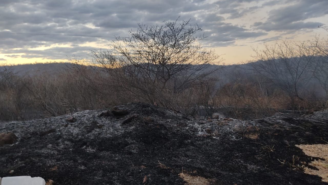 Boa parte do incêndio está contgrolado, mas as chamas continuam do lado esquerdo de quem vai de Patos para Catingueira, próximo ao pé da serra, como costumeiramente o trecho é identificado pela população.