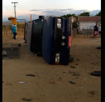 A caminhonete virou com a força da batida, mas permaneceu no local, onde supostamente estava.