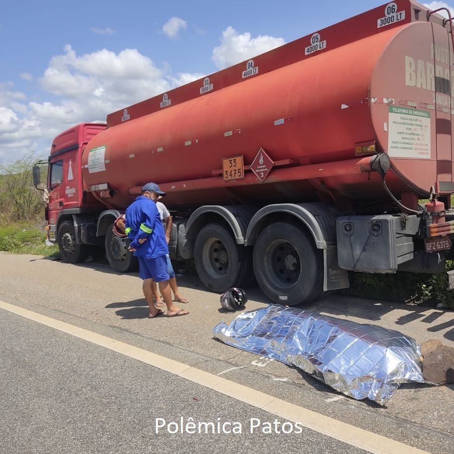 O impactante acidente teve como protagonistas um casal que trafegava de moto e um caminhão-tanque. Segundo relatos, a moto modelo pop reduziu abruptamente para acessar uma estrada vicinal, impossibilitando o caminhão de realizar a manobra de desvio a tempo após a frenagem. O resultado foi devastador, resultando na perda de vida da mulher, que era passageira da moto, e no socorro imediato do SAMU ao Hospital Regional de Patos para o esposo.