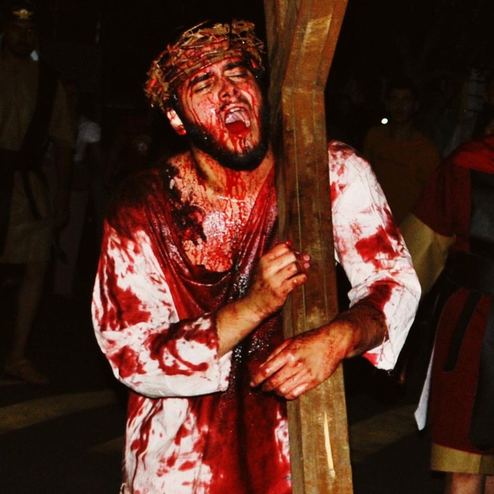 Compostas por 15 estações, a via sacra realizada pelo EJC e jovens da comunidade já virou tradução neste período. Durante a caminhada, os fiéis se unem em oração e meditação, revivendo os sentimentos de dor e sofrimento que Jesus passou.