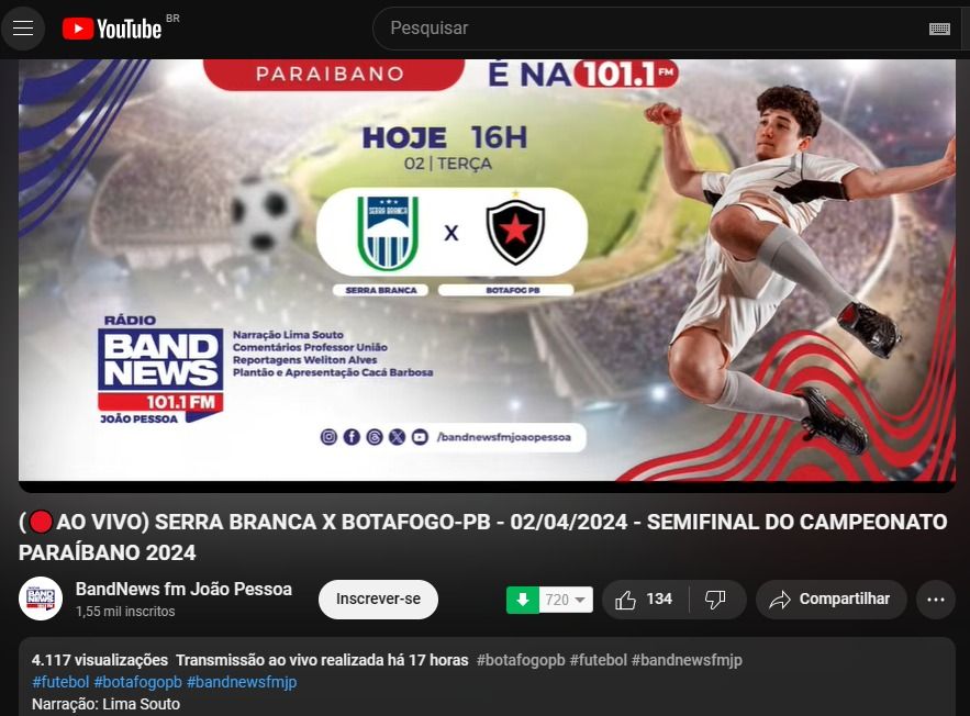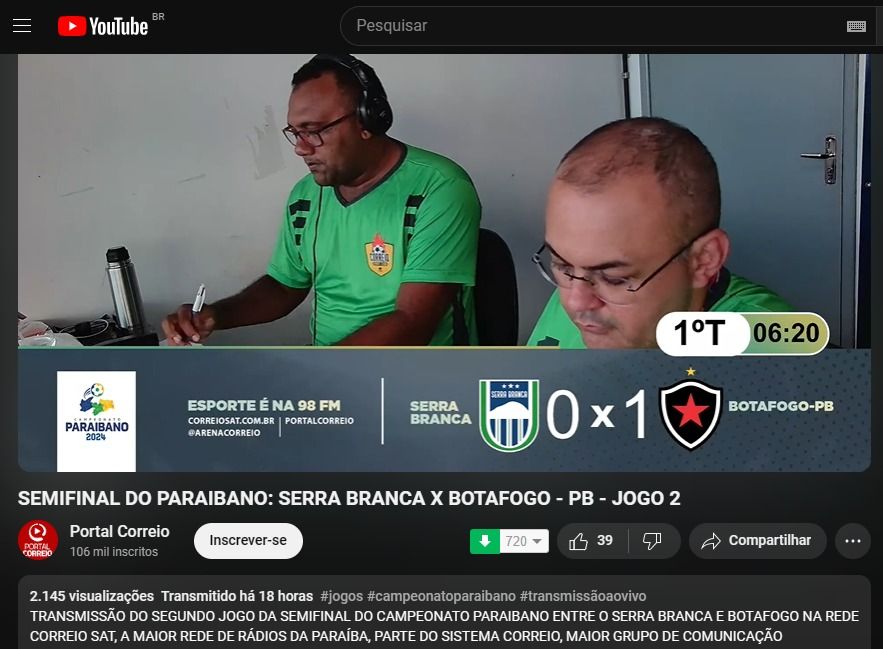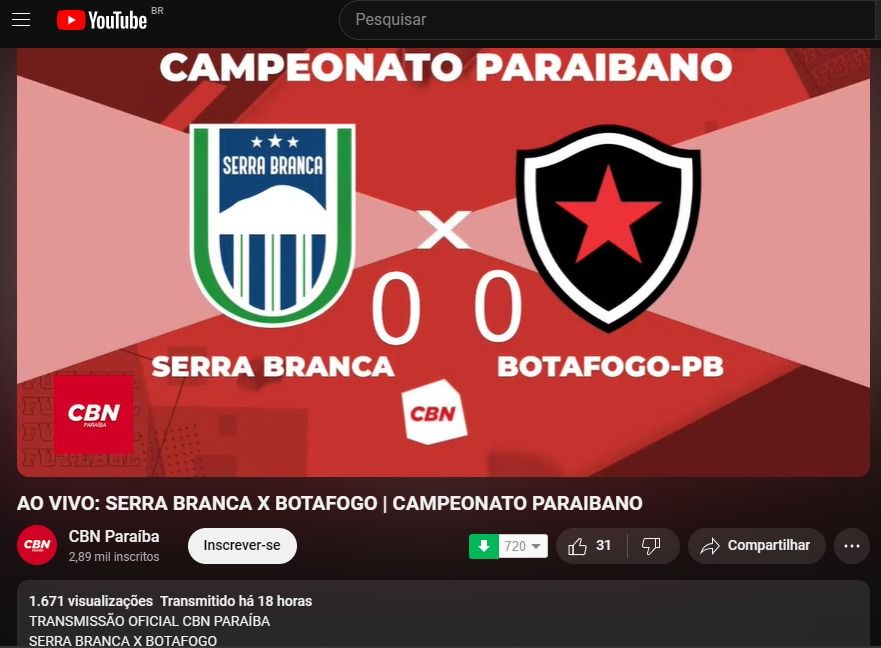 Serra Branca x Botafogo-PB - Audiência no Youtube: