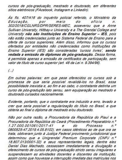 Em suas declarações, Corrinha Delfino explicou que obteve um diploma de mestrado de uma instituição não reconhecida pelo Ministério da Educação (MEC), o que lhe permitiu receber vantagens salariais. Ela destacou que não está sozinha nessa situação, acusando dezenas de outros docentes de Cajazeiras de fazerem o mesmo.