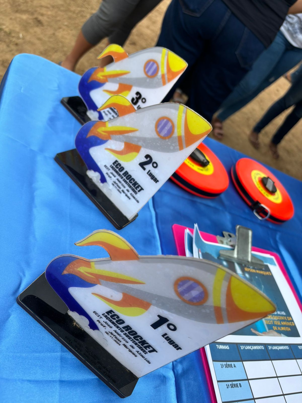 "A competição, que consistia em alcançar a maior distância com foguetes feitos de garrafa PET e cano de PVC, foi um sucesso absoluto, com um foguete atingindo impressionantes 125 metros de distância", detalhou.