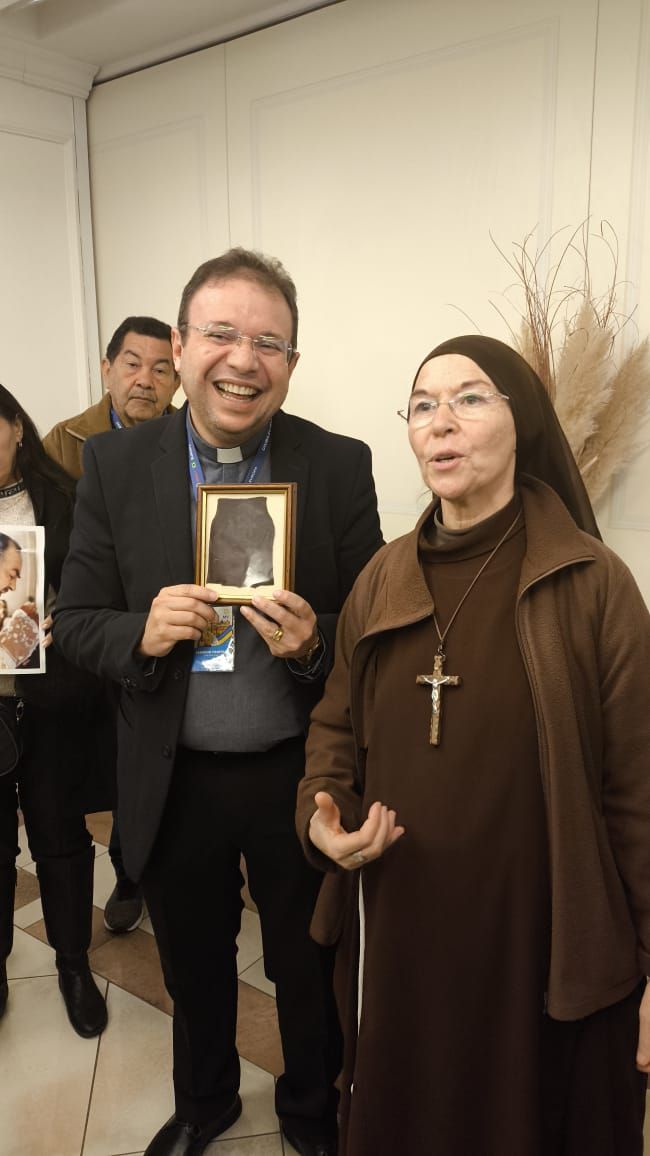 Em um momento emocionante e cheio de espiritualidade, o Padre Fabrício Timóteo recebeu uma relíquia extremamente valiosa: as luvas de São Padre Pio. A entrega foi feita pelas mãos de uma freira que conviveu com o santo italiano e que guarda uma conexão especial com ele.