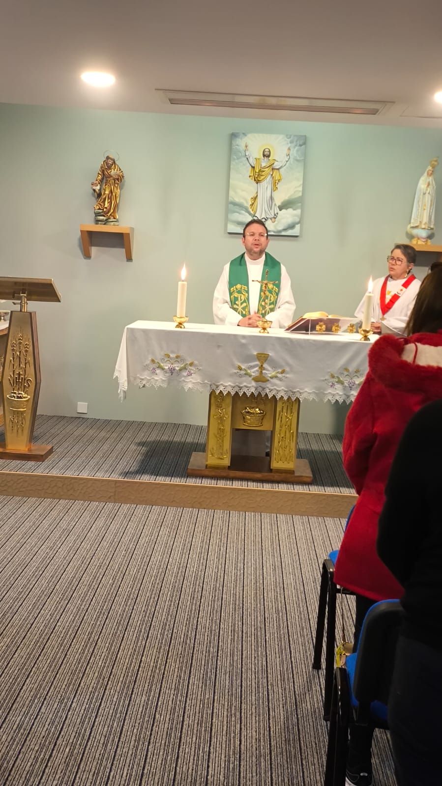 Padre Fabrício celebrou hoje na cidade de Fátima, especificamente na capela do hotel onde estão os peregrinos brasileiros, que são mais de 100. A missa, às 6h30min, no horário de Portugal, são três horas a mais de diferença do horário do Brasil.