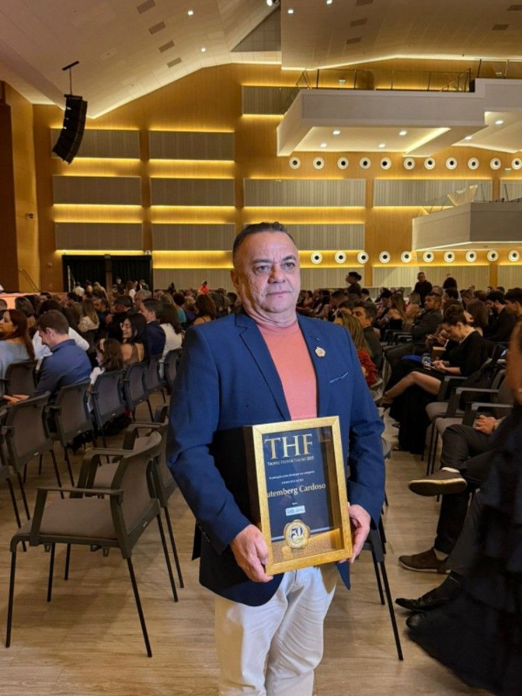 Paraíba - O jornalista paraibano Gutemberg Cardoso foi um dos homenageados da 26ª edição do Troféu Heitor Falcão (HF), entregue durante a festa que marcou os 50 anos da coluna do jornalista Abelardo Jurema. O evento ocorreu nessa quinta-feira (13), no Intermares Hall, em Cabedelo, reunindo nomes de destaque da sociedade paraibana.