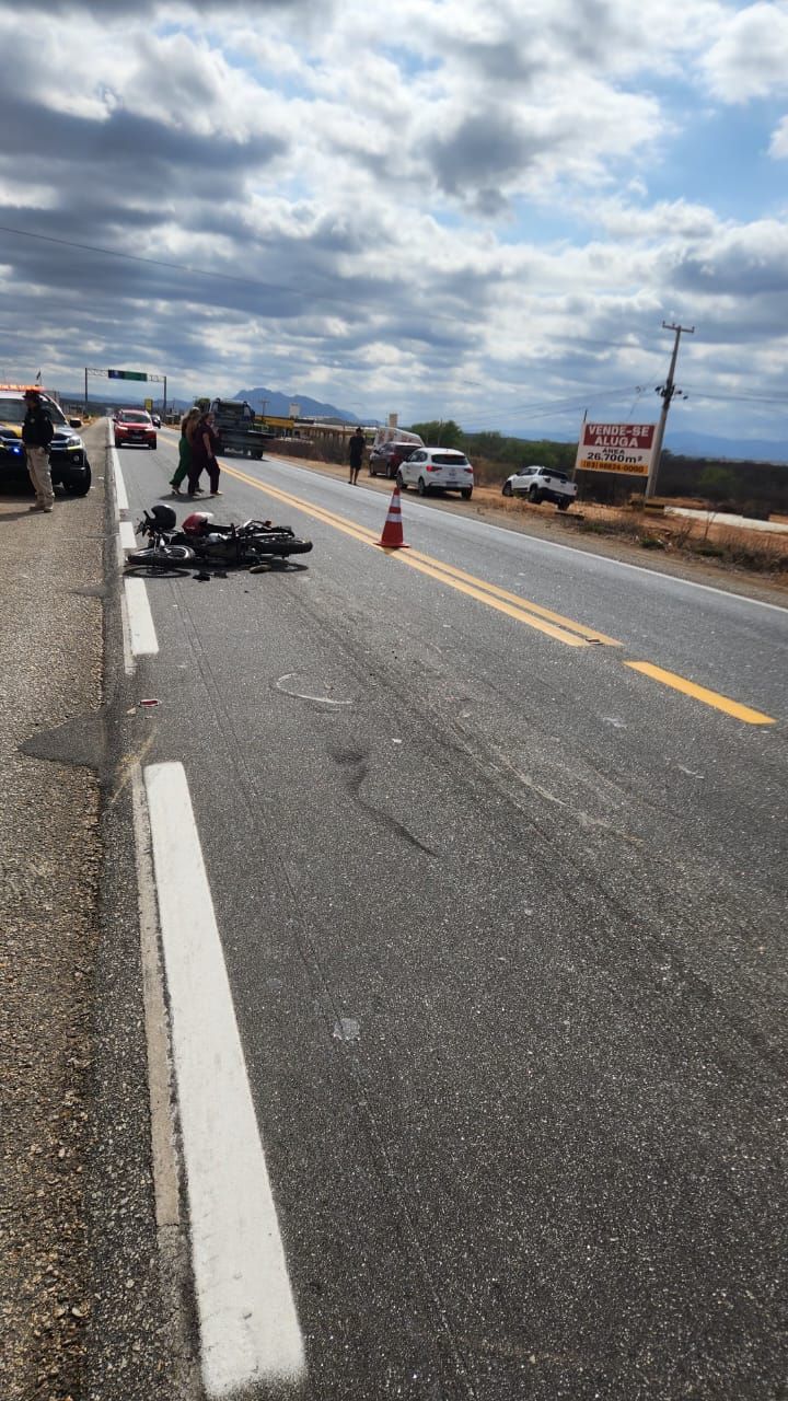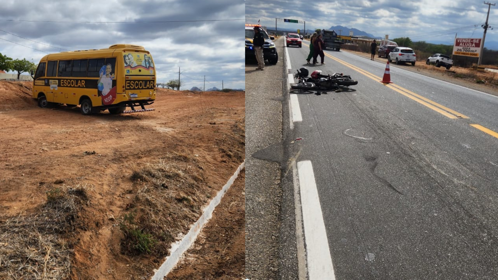 O sinistro envolveu uma motocicleta Honda NXR 125 e um ônibus de transporte escolar pertencente à Prefeitura Municipal de Passagem.