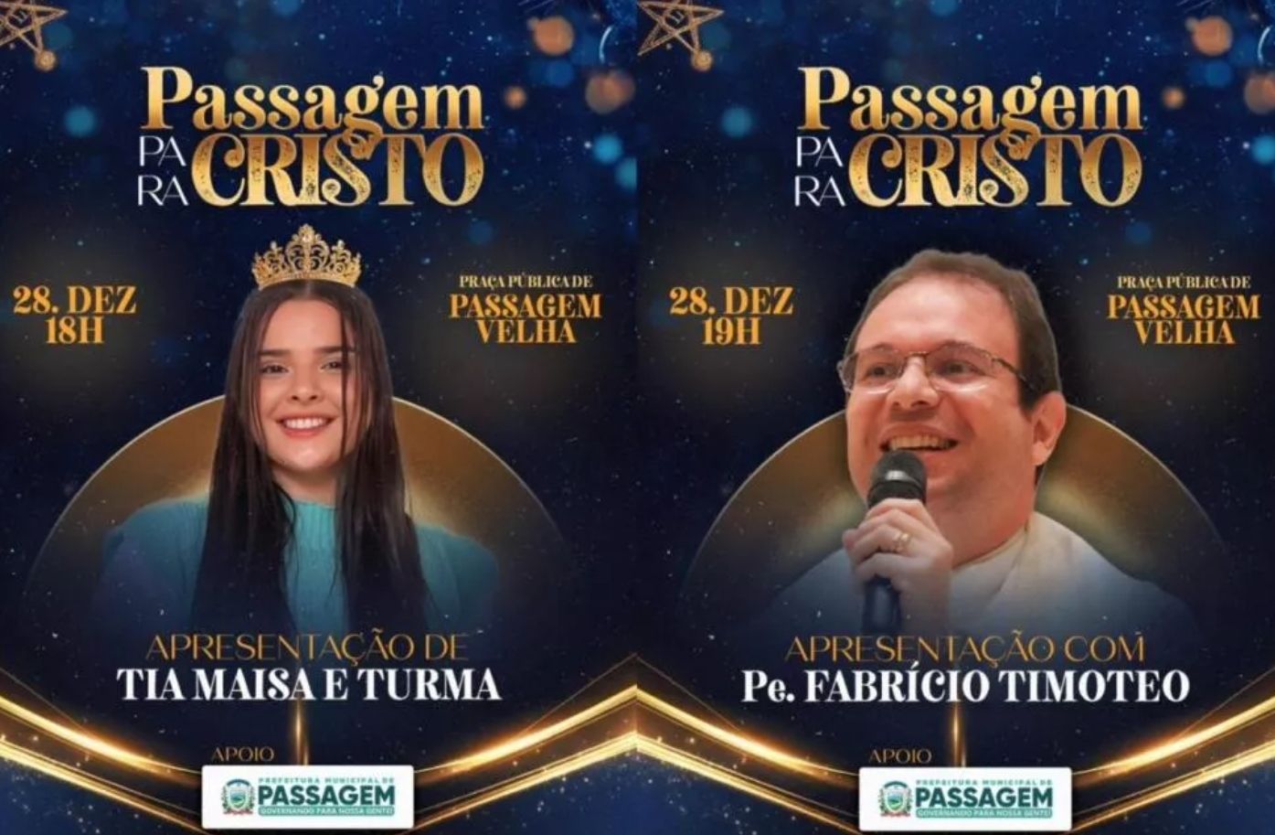 A cidade de Passagem, na Região Metropolitana de Patos, vai sediar uma noite especial de adoração, louvor e entrega a Deus com a realização do evento “Passagem para Cristo”. A programação acontece no próximo domingo, dia 28 de dezembro, a partir das 18h, na Praça Pública de Passagem Velha.