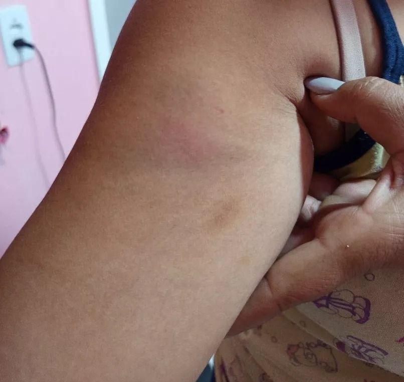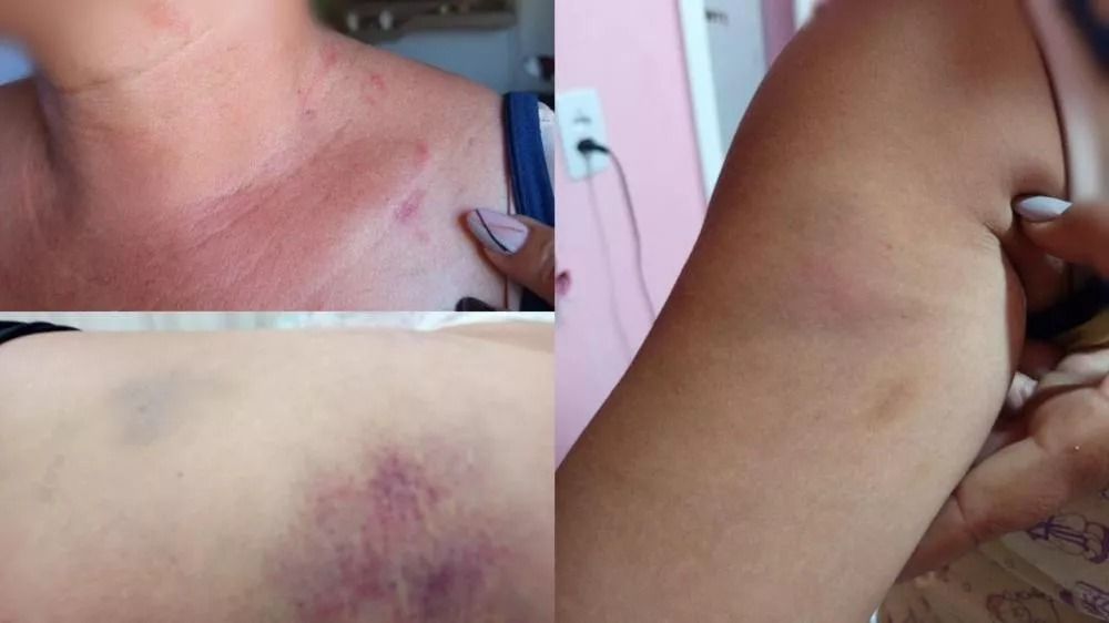 Com hematomas visíveis e registros fotográficos das lesões, a mulher também aponta falhas no atendimento: erros em dados pessoais na medida protetiva, dúvidas sobre a condução do exame de corpo de delito, e falta de oitiva das testemunhas até o momento.