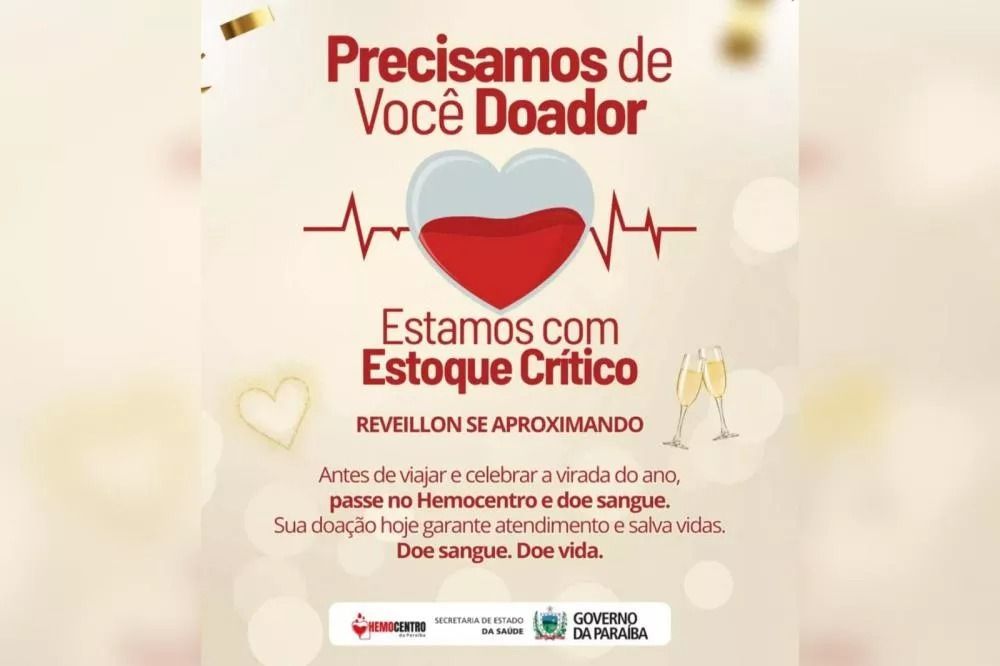 O estoque de sangue da rede estadual de saúde da Paraíba encontra-se em nível crítico, e o Hemocentro de Patos faz um alerta urgente à população para reforçar as doações neste período de Réveillon. Com a proximidade das festas de fim de ano e o aumento da demanda hospitalar, a participação dos doadores torna-se ainda mais essencial para garantir o atendimento a pacientes que necessitam de transfusões.