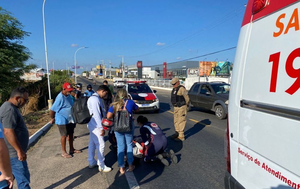 Com dores intensas no ombro e na clavícula, o motociclista foi amparado no local até a chegada do Serviço de Atendimento Móvel de Urgência (SAMU), que foi acionado logo em seguida.