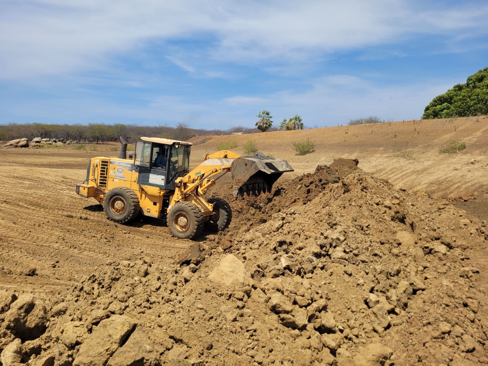 O trabalho de campo também foca na infraestrutura hídrica. Em parceria com a Associação dos Trabalhadores de Gatos e Várzea Alegre (ASTRU), a prefeitura está realizando a recuperação de um barreiro na propriedade do agricultor Chico Augusto.
