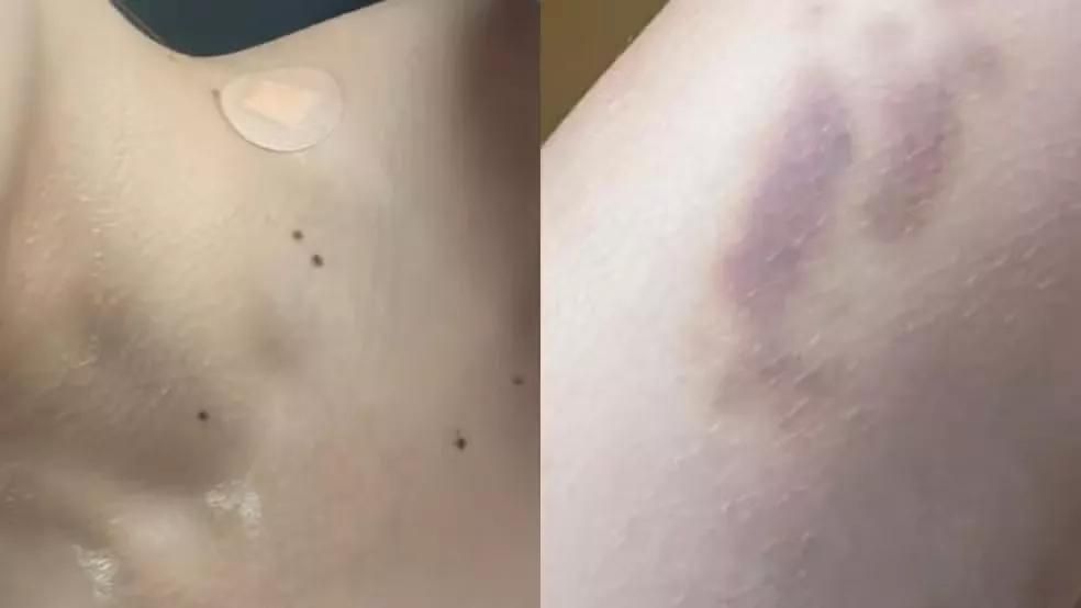 Meses depois, em agosto, ao se maquiar, ela percebeu uma pequena bolinha no pescoço. O sinal parecia isolado. Dois ciclos de anti-inflamatório foram feitos, sem melhora. Em setembro, diversas manchas nas pernas apareceram sem motivo aparente.