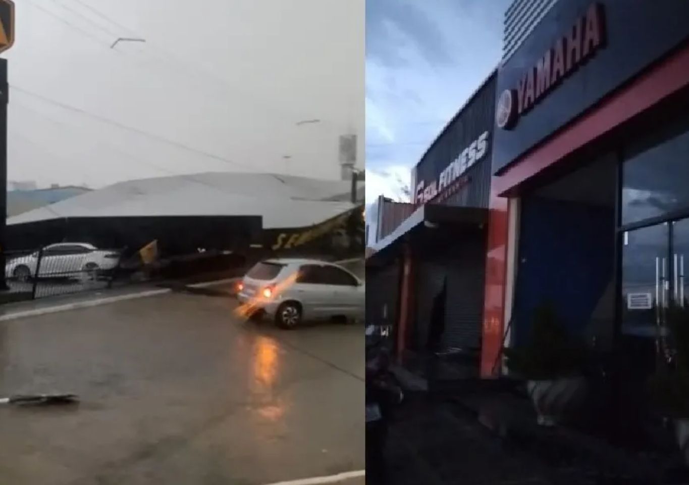 Na Catingueira Veículos, o cenário foi de maior impacto. Parte da cobertura do pátio foi arrancada pelas rajadas e desabou sobre automóveis que estavam expostos no local, atingindo carros novos e seminovos. O proprietário, Brandão, explicou que ainda avalia os danos. “Debaixo dessa estrutura tinha cerca de 100 veículos e grande parte ficou avariada com a queda da estrutura”, relatou.