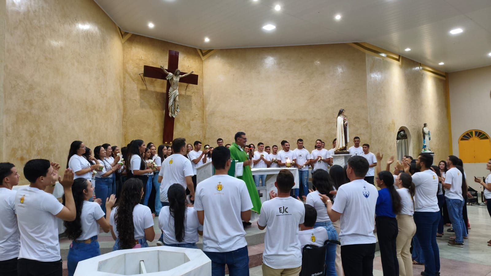 No domingo, 8 de fevereiro, durante a celebração da Santa Missa na Igreja Matriz de Santa Terezinha, no município de Santa Terezinha, jovens que participaram recentemente do Encontro de Jovens com Cristo (EJC) foram oficialmente enviados pela comunidade paroquial.