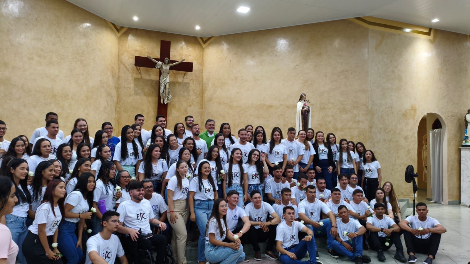 Ao todo, quase 50 jovens, juntamente com integrantes de duas turmas anteriores do EJC, que atualmente atuam na coordenação e condução do movimento, participaram do momento especial. Ao final da celebração, os jovens realizaram uma belíssima homenagem ao padre Luciano Dias Moraes, com a entrega de flores e presentes, em reconhecimento ao trabalho pastoral desenvolvido ao longo dos últimos seis anos na paróquia.