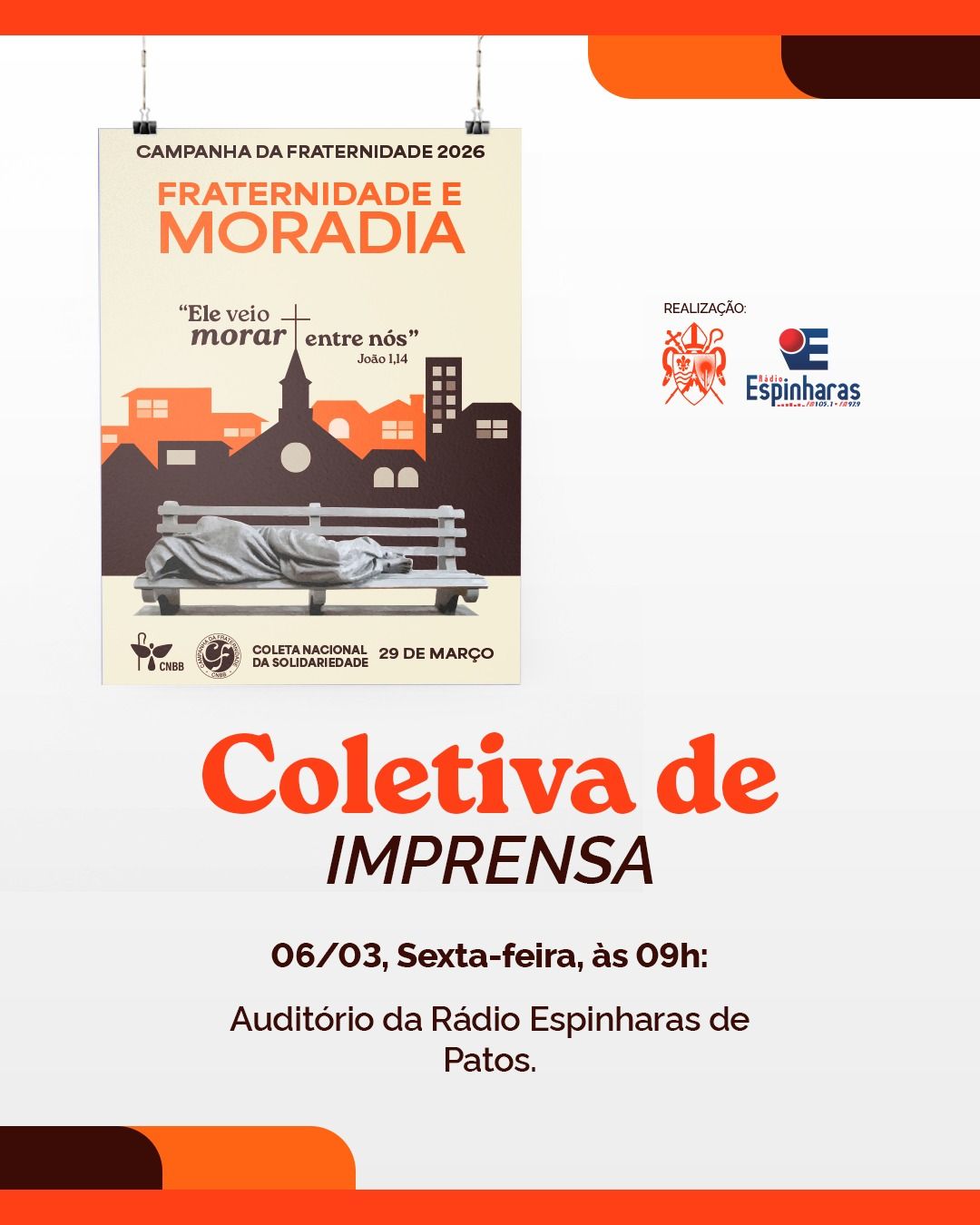A coletiva é uma realização do Setor de Campanhas da Diocese em parceria com a Rádio Espinharas, reforçando o compromisso da Igreja com o diálogo e a comunicação social.