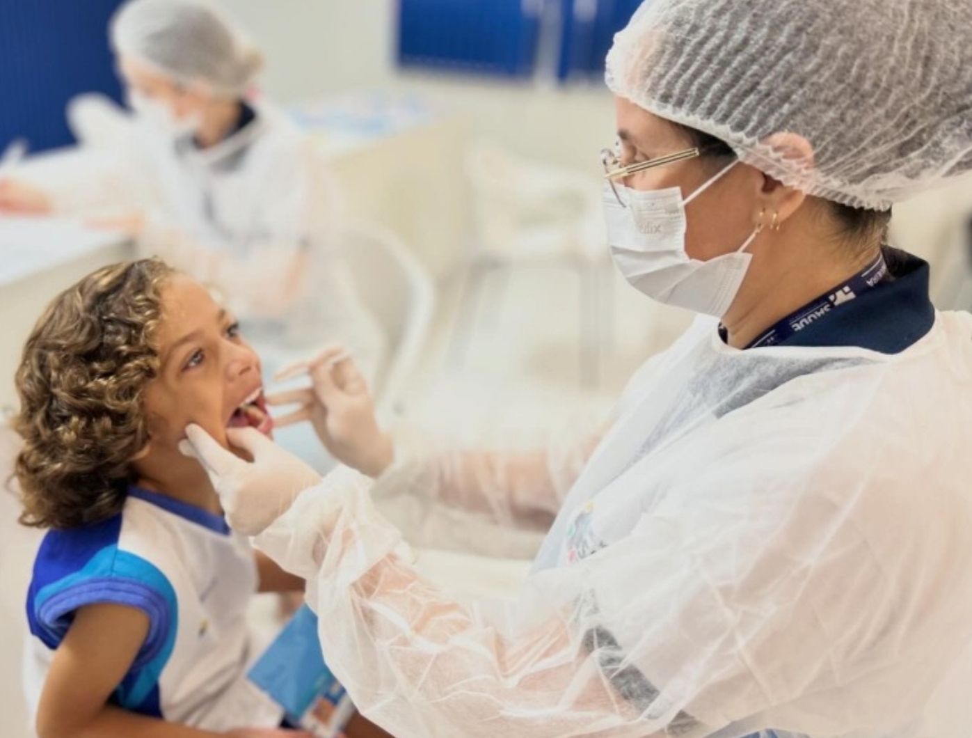 A equipe formada por profissionais também forneceu instruções sobre métodos de escovação e distribuiu kits de higiene, contendo escova e creme dental, como parte da estratégia de fornecimento de insumos para a manutenção dos cuidados diários no ambiente doméstico e escolar.