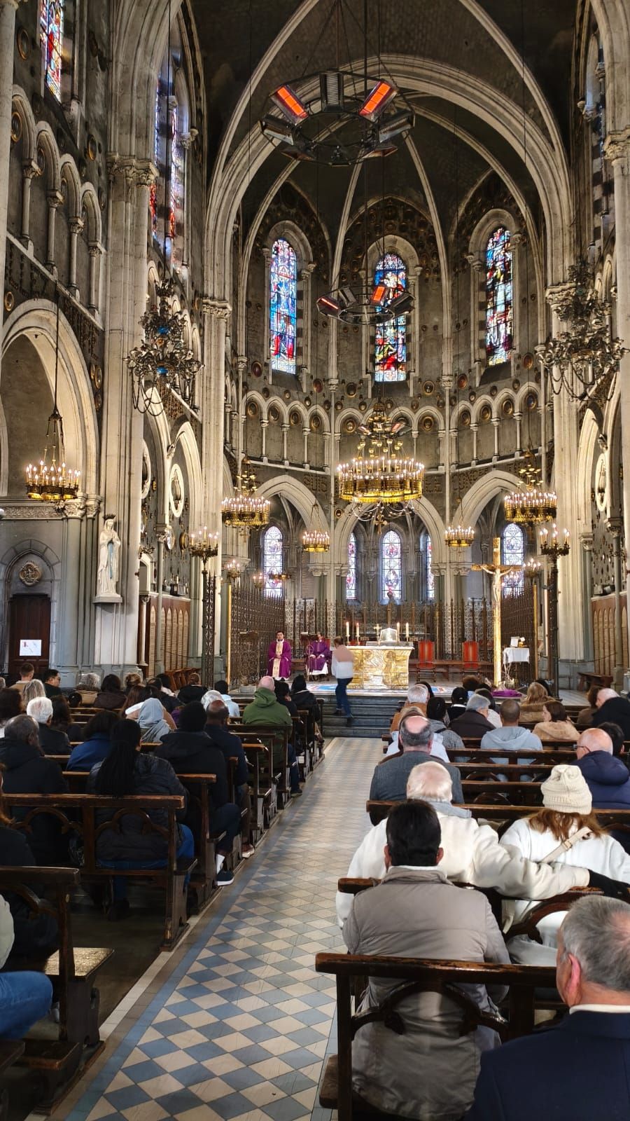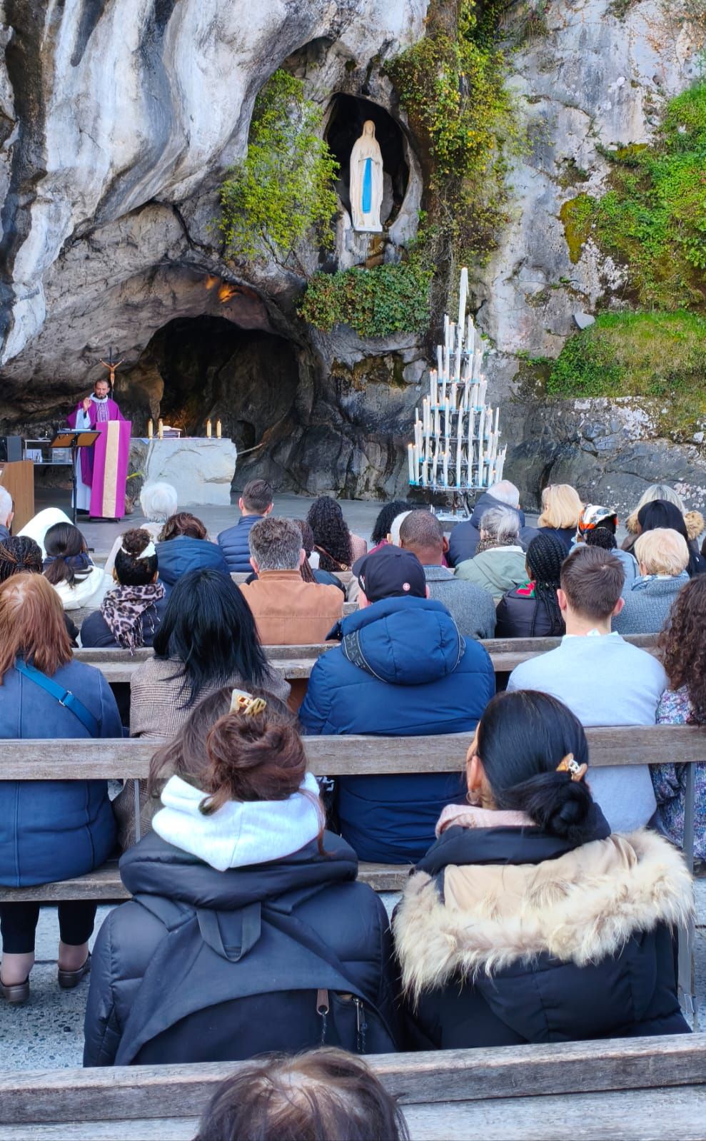 A celebração foi marcada por forte participação dos peregrinos, que acompanharam com atenção e emoção cada momento da missa, reforçando ainda mais a experiência espiritual vivida em Lourdes.