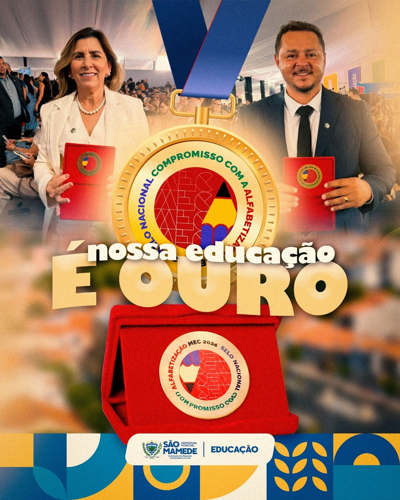 Diretamente de Brasília, o prefeito Chaguinha Lopes, juntamente com a secretária de educação Maria da Conceição Morais (Concinha), celebrou a conquista do Prêmio Selo Ouro do Compromisso Nacional da Criança Alfabetizada. O reconhecimento coroa uma virada histórica na educação municipal: em um intervalo de menos de 10 meses, São Mamede elevou o índice de alfabetização de 14% para expressivos 64%.