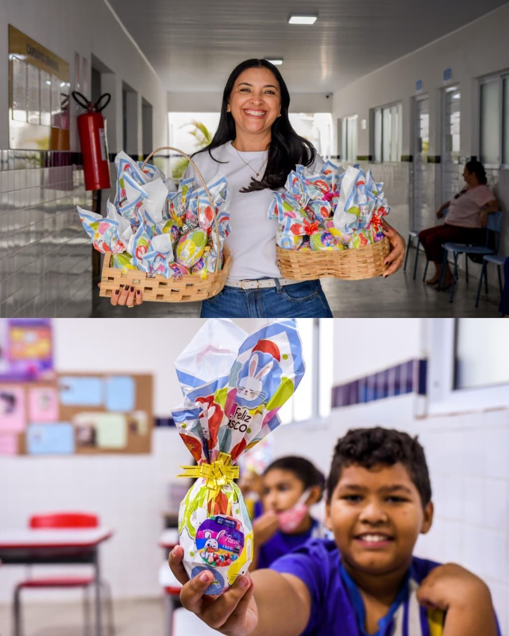 A Prefeitura realizou a entrega de mais de 1.300 ovos de Páscoa para estudantes da rede municipal de ensino, em uma ação marcada por alegria, cuidado e valorização das crianças. A prefeita Ana Peixoto participou ativamente da iniciativa, visitando escolas e acompanhando de perto a distribuição, reforçando o compromisso da gestão com o bem-estar dos alunos.
