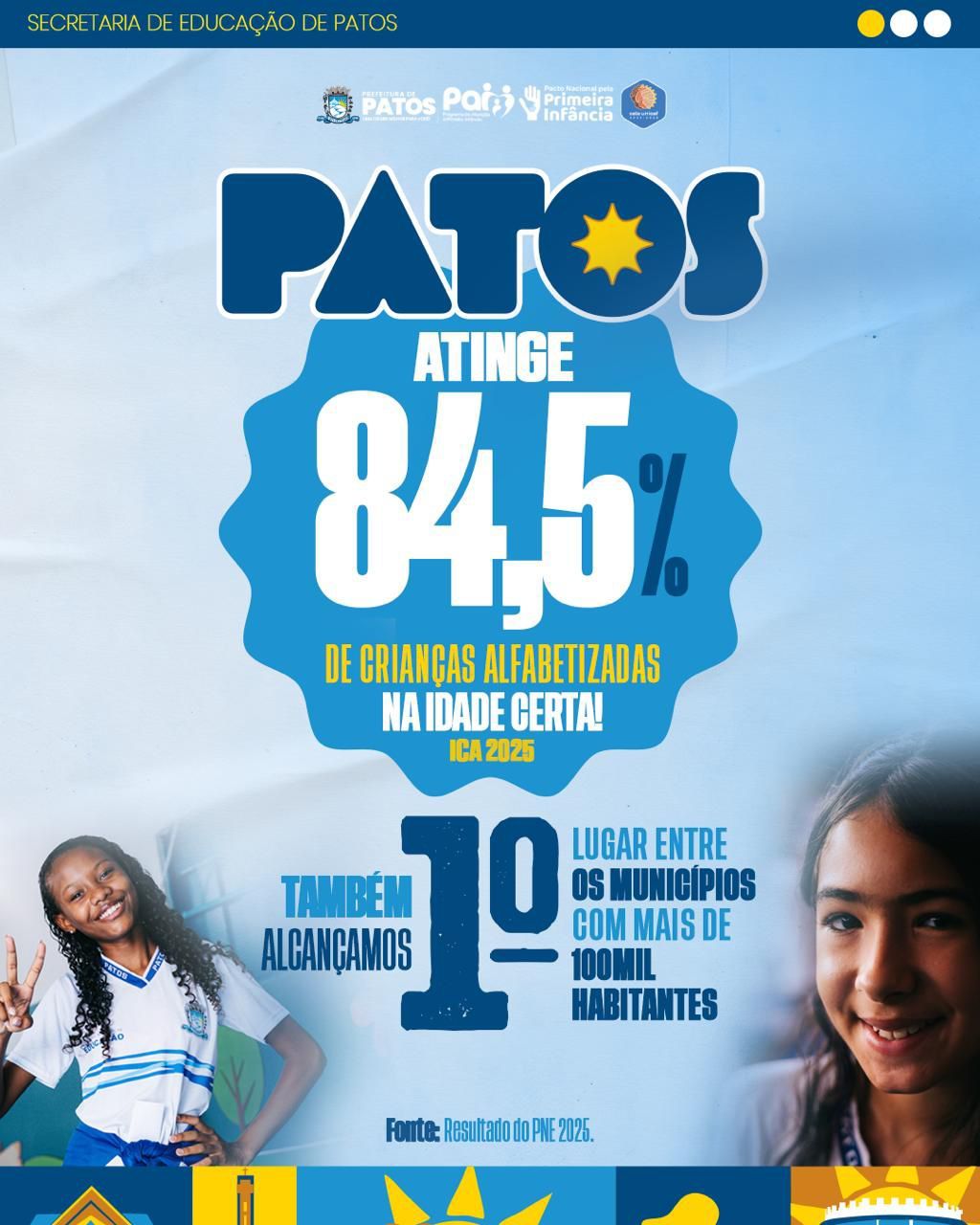 Patos bate metas nacionais e estaduais ao atingir 84,5% no Índice de Crianças Alfabetizadas na idade certa.