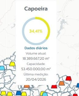 A população segue acompanhando de perto cada atualização, já que o Açude de Capoeira é uma das principais fontes de abastecimento da região.