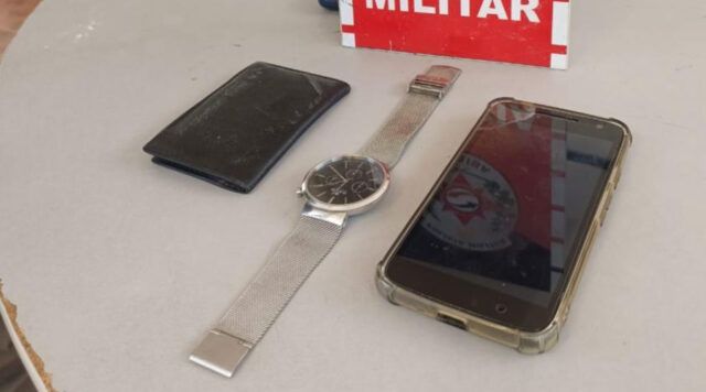 Após algumas rondas nas proximidades da ocorrência, a guarnição encontrou os dois indivíduos próximo a uma chácara, encontrando alguns objetos, entre eles uma carteira, um relógio e um aparelho celular
