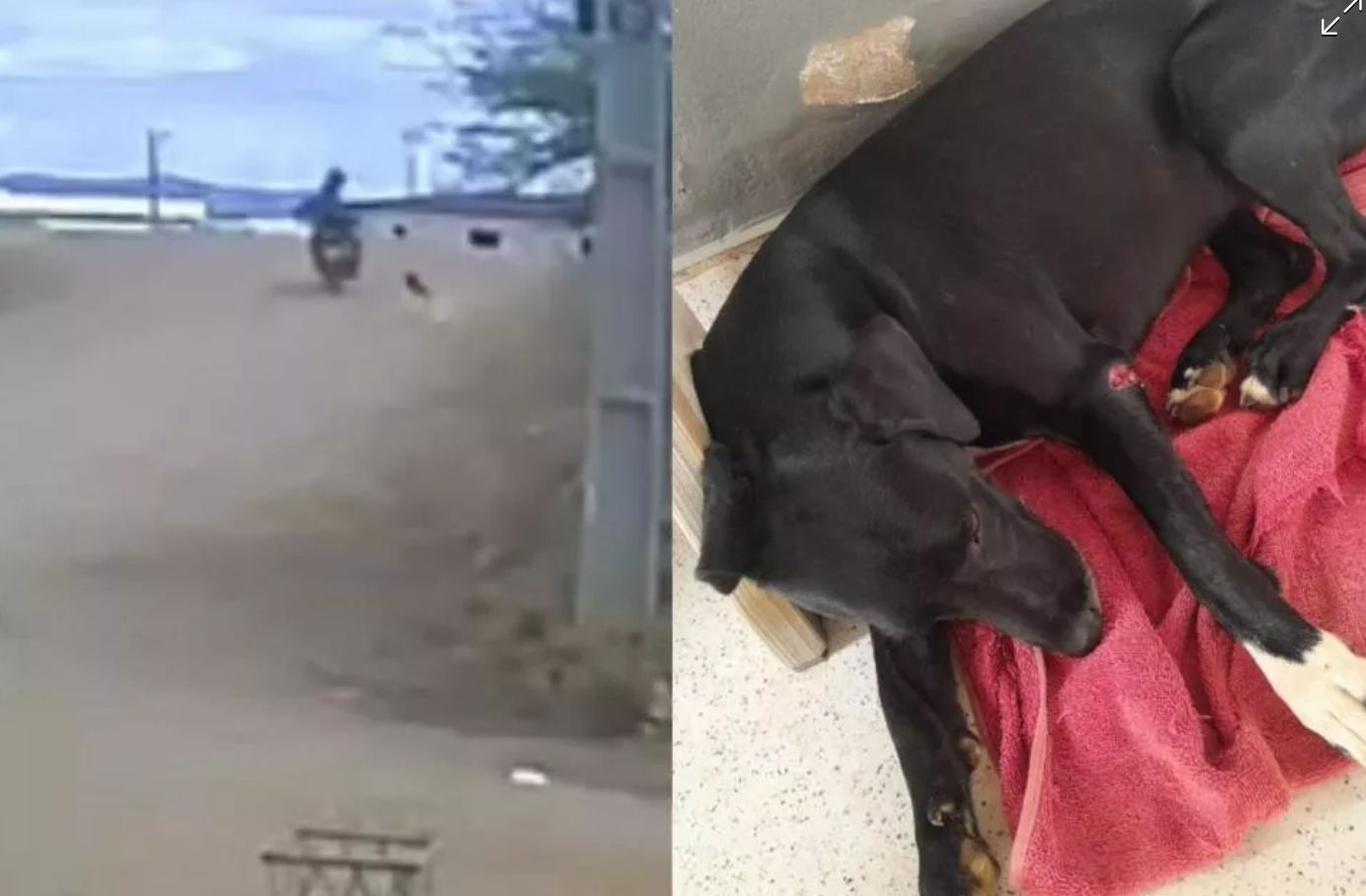 Após o ocorrido, o cachorro recebeu ajuda dos moradores e segue em recuperação. O caso pode ser enquadrado como crime de maus-tratos contra animal, previsto na legislação brasileira.