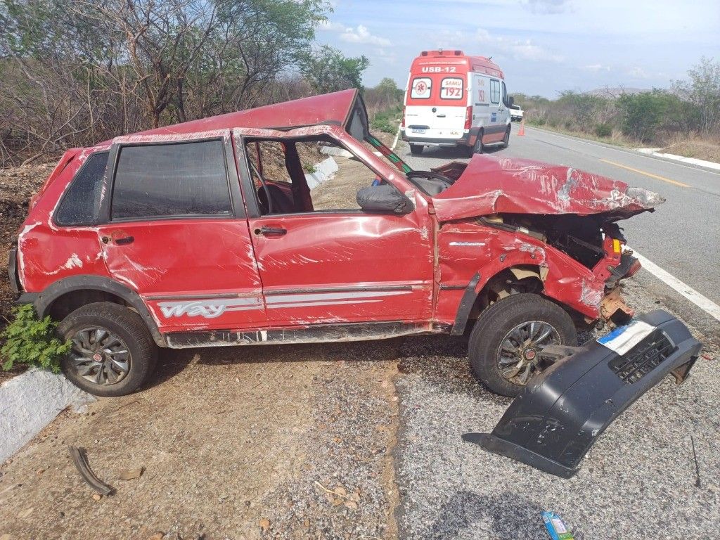 No início da tarde deste último sábado (31), por volta das 13h20, um grave sinistro de trânsito foi registrado na BR-427, no Km 14, envolvendo um veículo Fiat/Uno Mille Way, de cor vermelha, ano 2009, com três ocupantes, todos moradores do município de Paulista-PB. Levantamentos realizados pela equipe da PRF que atendeu a ocorrência, apontam que o automóvel seguia no sentido Pombal (PB) a Serra Negra do Norte (RN), saiu da pista próximo à entrada do trevo que dá acesso à cidade de Paulista, seguindo pelo acostamento sem controle, atravessando a via e colidindo contra uma barreira. Com o impacto, o veículo capotou e ficou imobilizado no sentido Pombal-PB.