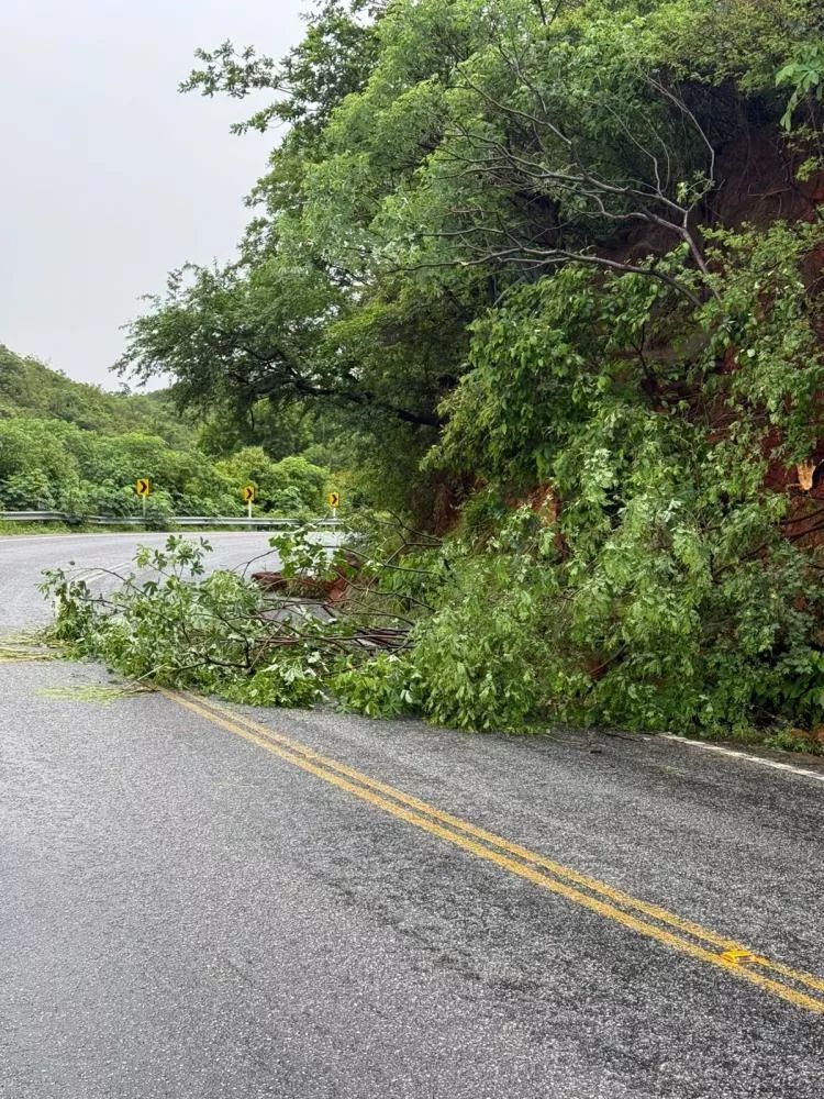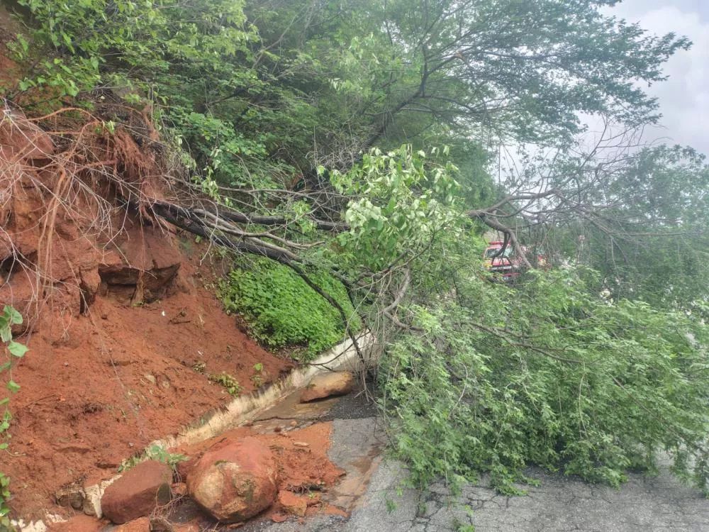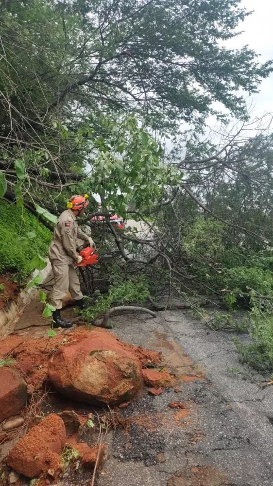 As ações incluem a retirada de pedras de grande porte e o corte de árvores atingidas ou comprometidas pelo deslizamento.