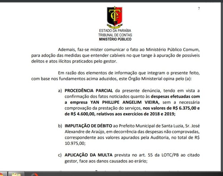 Ministério Público de Contas da Paraíba acatou a denúncia do vereador de Santa Luzia, Damião Alves de Oliveira, mais conhecido por Baita.