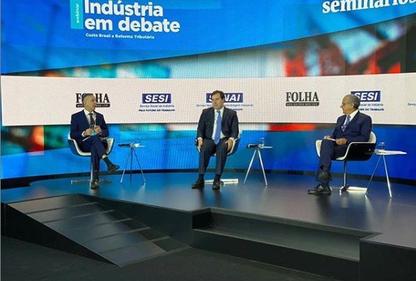 Ao lado do Presidente da Câmara Federal, Rodrigo Maia, do Presidente da CNI, Robson Braga, do presidente da Abiplast e vice-presidente da Fiesp José Ricardo Roriz Coelho e do economista Celso Pastore, o deputado federal e relator da Reforma Tributária, Aguinaldo Ribeiro (Progressistas) participou de mais um debate promovido pela Folha de São Paulo e a Confederação Nacional da Indústria (CNI) que discutiu o custo Brasil e a Reforma Tributária.