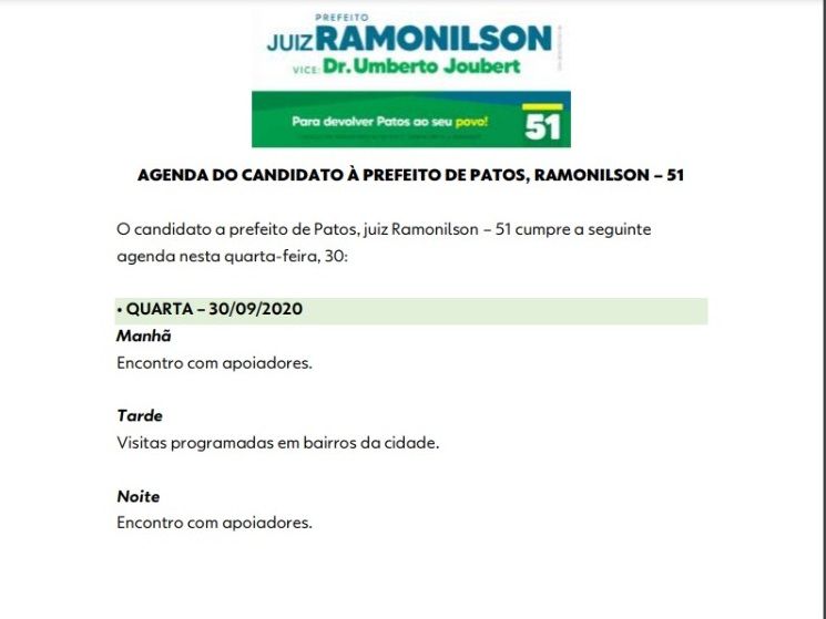 A divulgação das agendas dos candidatos são de inteira responsabilidade de suas assessorais.