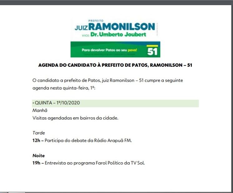 A divulgação das agendas dos candidatos são de inteira responsabilidade de suas assessorais.