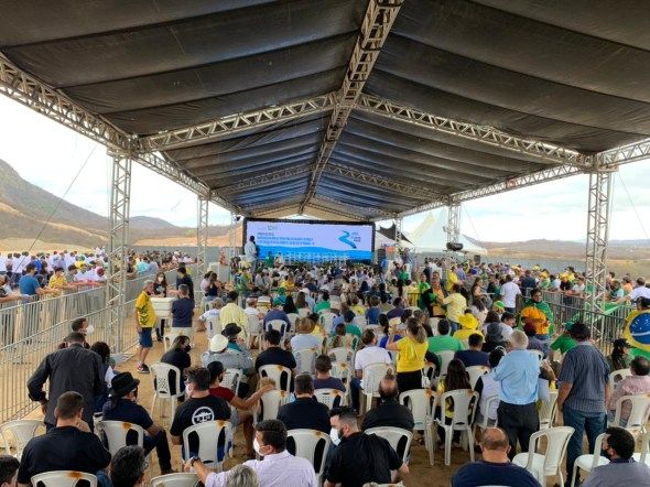 Sem usar máscara de proteção à Covid-19, Bolsonaro saudou a população que o aguardava para o evento, que marcou a entrega do Eixo Norte da transposição do Rio São Francisco, após 13 anos desde o início da obra. Agora, o caminho das águas composto pelos eixos (Leste e Norte), está concluído.