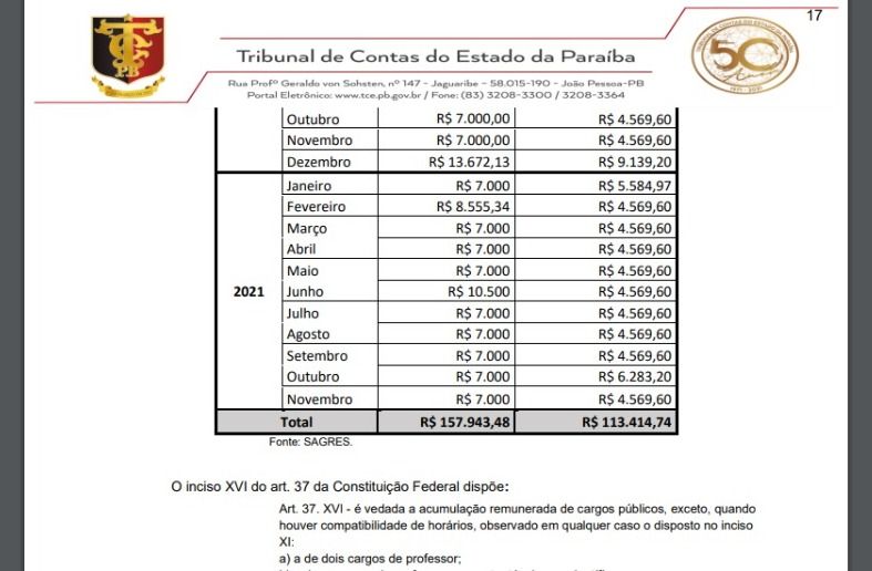 A auditoria teve como base de informações o portal de transparência SAGRES, onde constam todos os valores recebidos por Adriana nesse período correspondente à cumulação de cargos indevida. Ao todo, Adriana vinha recebendo cerca de R$ 11.569,60 todos os meses pelas duas funções que ocupava.
