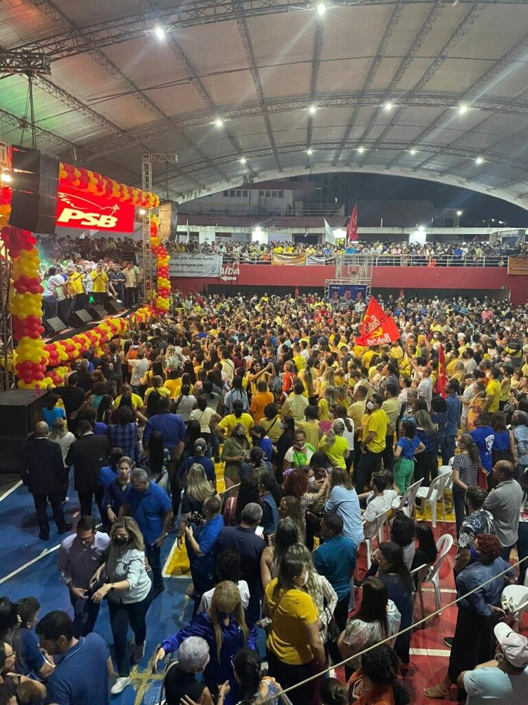 Uma multidão lotou o evento do PSB, que acontece nesta quinta-feira, (14), no Clube Cabo Branco, em João Pessoa.