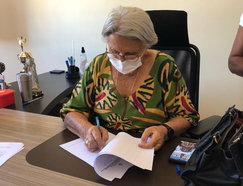 Durante a visita a prefeita assinou o Projeto de Lei Municipal que institui o novo piso da categoria dos agentes comunitários de saúde e de agentes de combate às endemias, demonstrando respeito e valorização aos profissionais do setor.