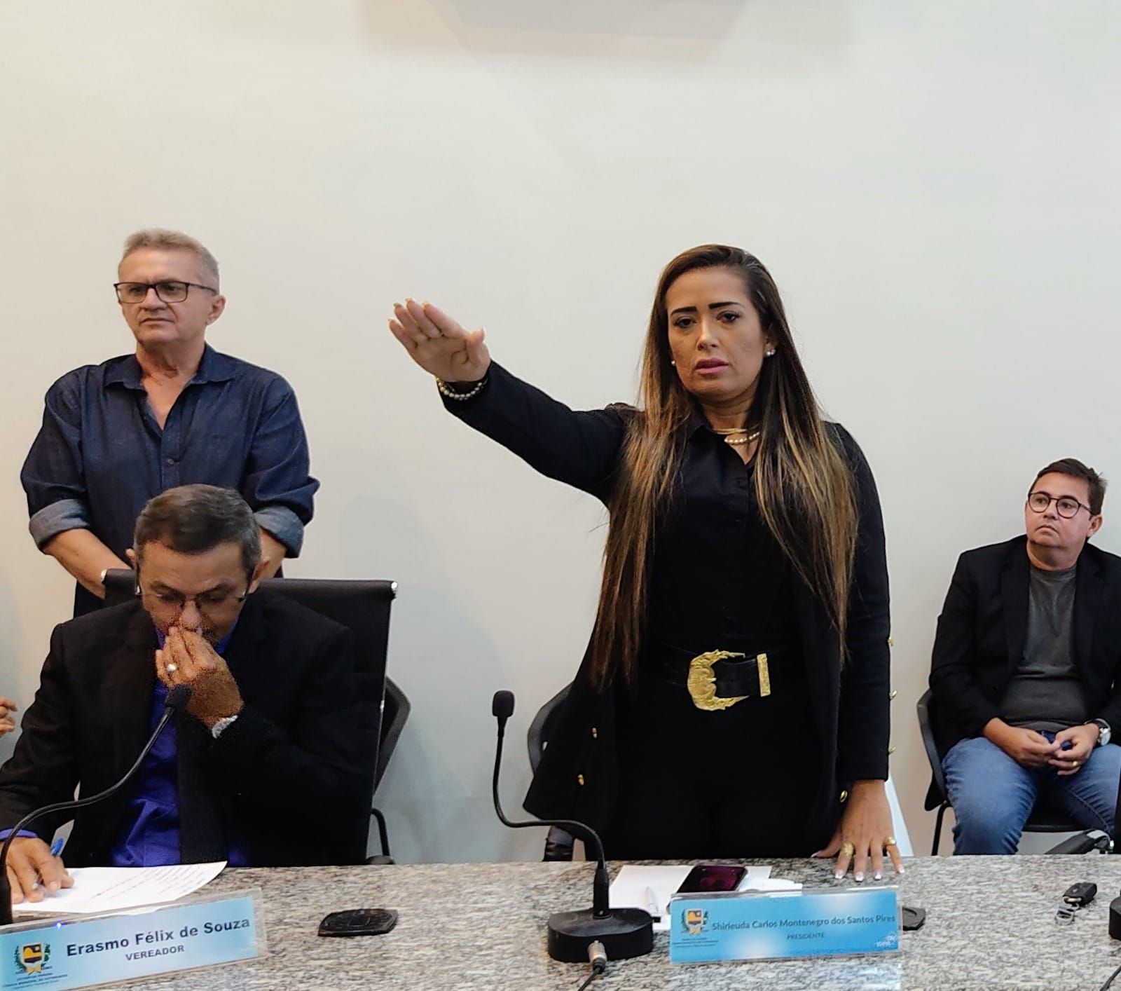 "A responsabilidade agora aumenta um pouco. Mas me sinto preparada para ocupar este cargo e me sinto preparada para fazer o que for melhor para a cidade. Nós iremos trabalhar em conjunto com o Poder Executivo para gerar desenvolvimento para o nosso município. Pretendo inovar, fazer obras. Estou chegando agora e vou ver o que precisa ser feito, mas buscarei fazer sempre o melhor para o nosso povo", garantiu a presidente.