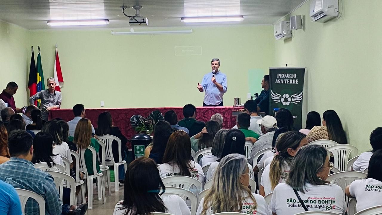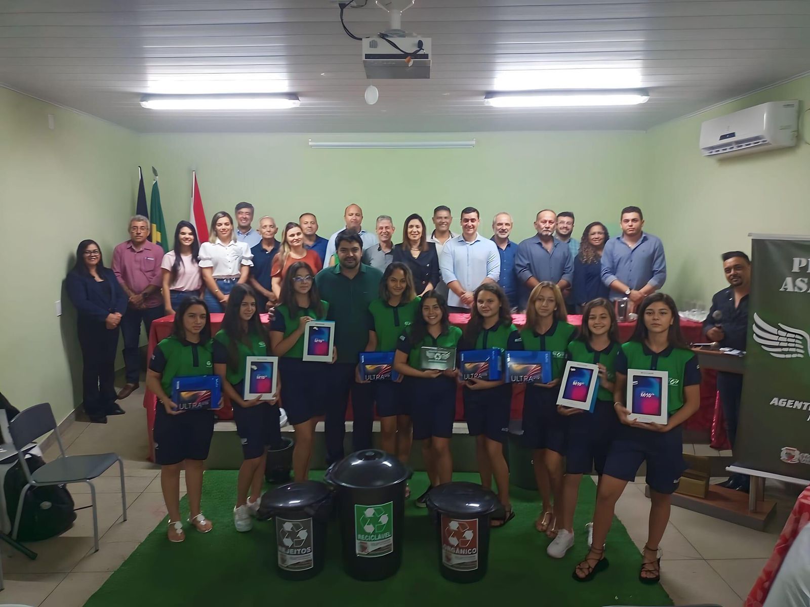 Já o Prefeito Esaú mais uma vez se comprometeu com a causa ambiental e destacou a importância da educação dentro do projeto através das Crianças que fazem parte do Projeto Asa Verde, que irá conscientizar toda população sobre a coleta seletiva, e aproveitou a oportunidade para entregar as crianças os fardamentos e tablets que irão usar no projeto tudo custeado pelo o município.
