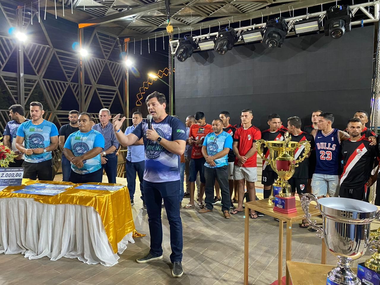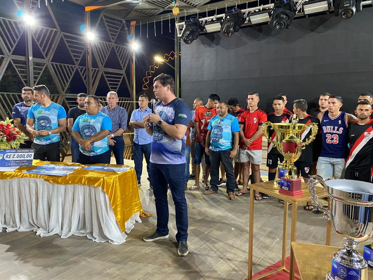 Taciano ainda participou da solenidade de entrega da premiação do Campeonato Municipal de Futebol Chico Gato. Parabenizou toda a gestão e o prefeito Marcos pelo brilhante e grandioso evento, os desportistas e as equipes participantes do campeonato, e especialmente os vencedores.