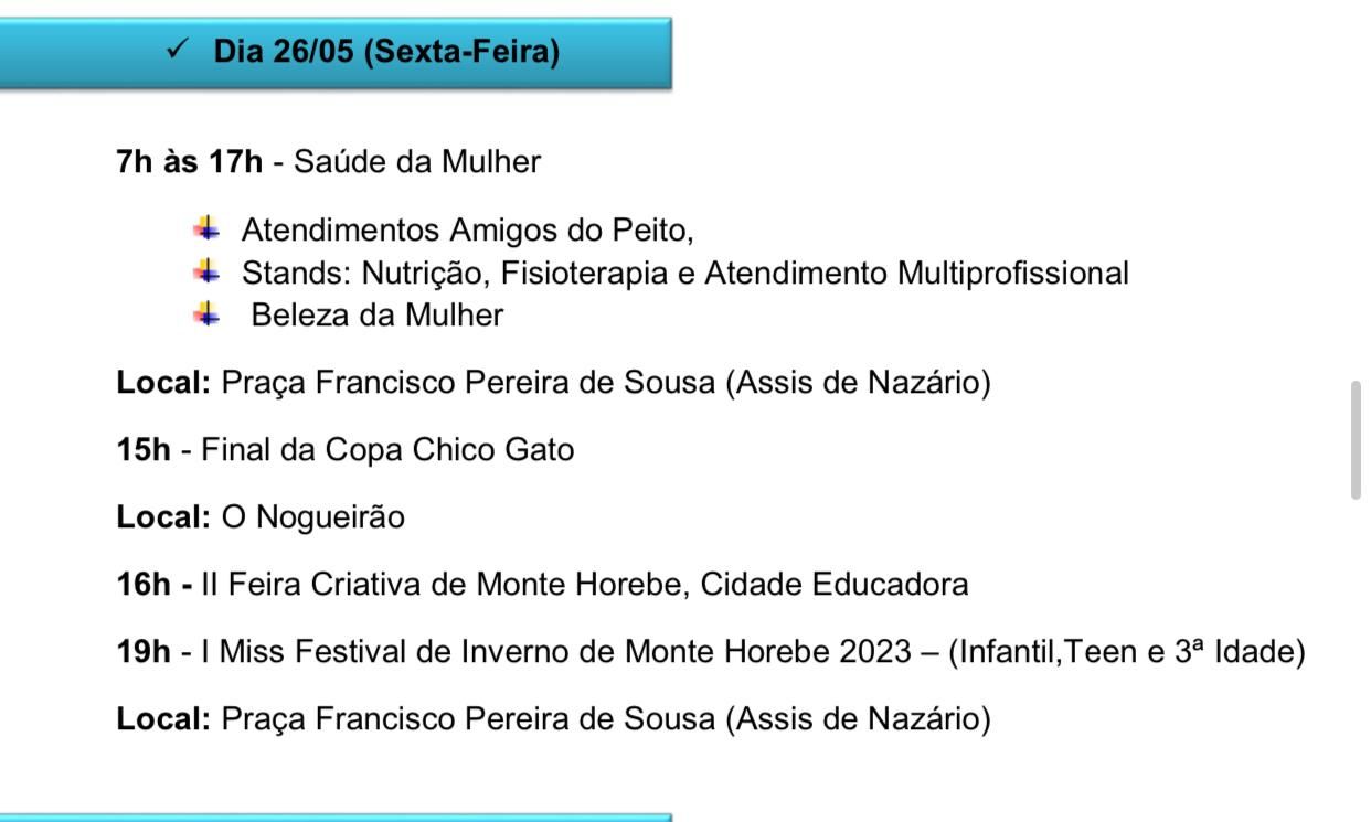 O deputado Taciano Diniz prestigiou a 3ª Edição do Festival de Inverno na cidade de Monte Horebe, durante esta sexta-feira, 26 de maio, com o prefeito Marcos Eron, os vereadores, os secretários, e os demais servidores, abraçando a população.