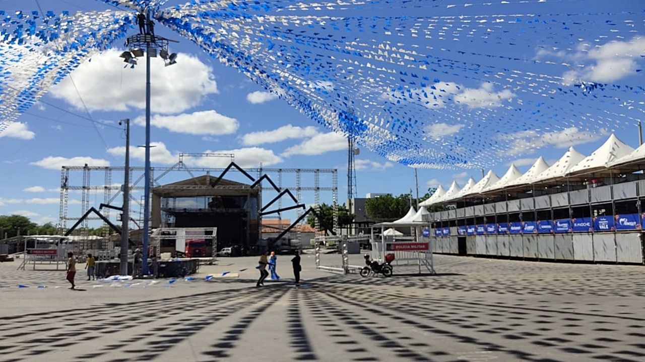 Os camarotes já estão montados, além das barracas e outras estruturas. A expectativa é que no domingo toda a estrutura do São João esteja montada, apenas aguardando o momento da abertura oficial do evento.