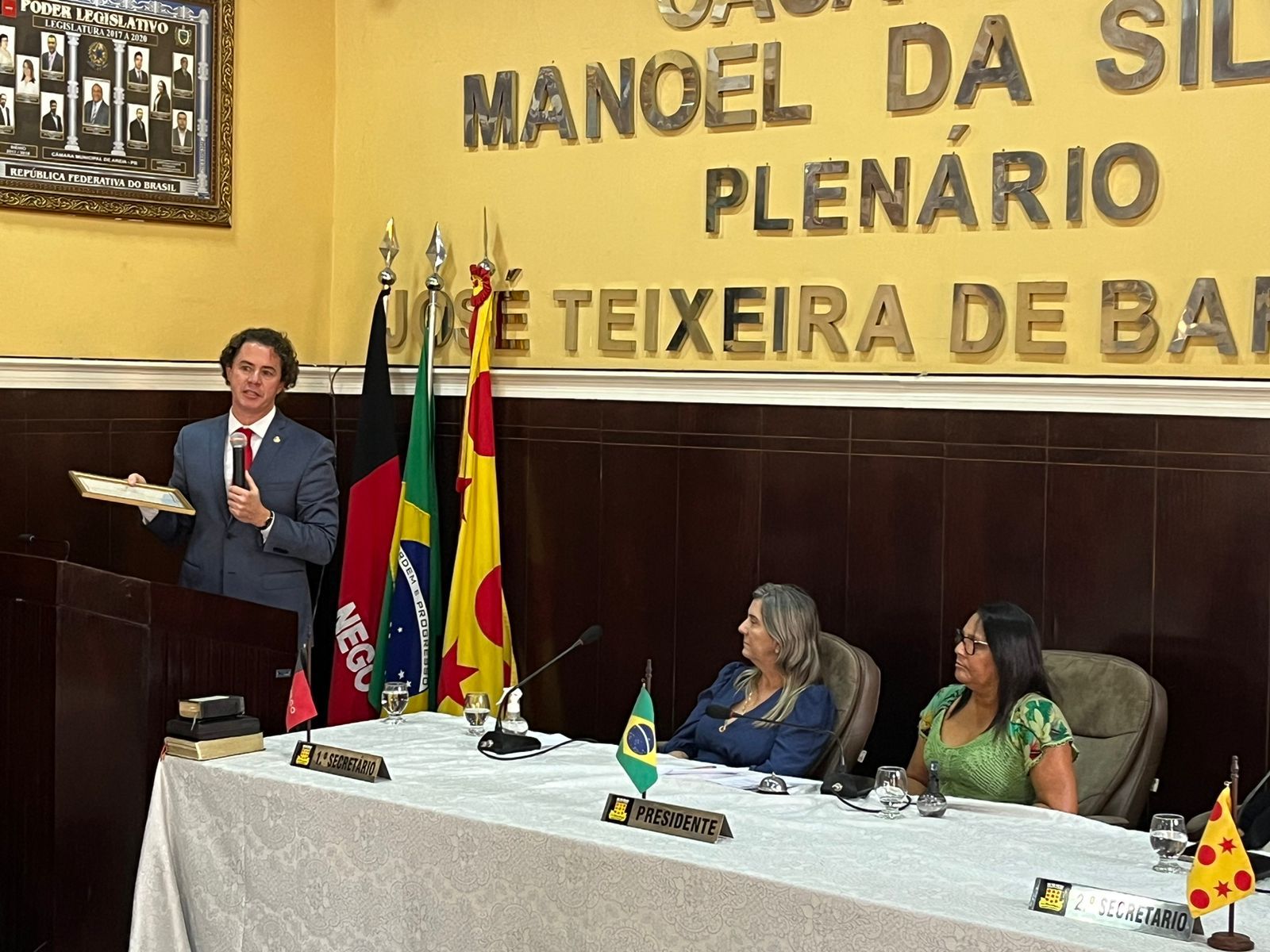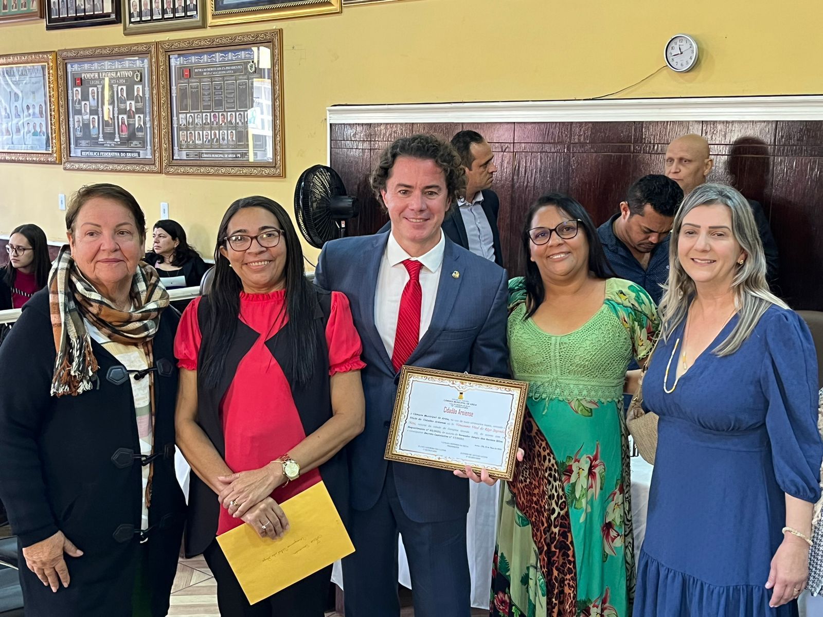 Veneziano recebeu uma homenagem especial dos servidores da Saúde do município, pelos recursos destinados a esta área e também por sua luta em favor de bandeiras importantes, como o Piso da Enfermagem e o Piso dos Agentes Comunitários de Saúde - ACSs e Agentes de Combate a Endemias - ACEs. O ACS Kleveny Soares falou em nome dos servidores da Saúde.