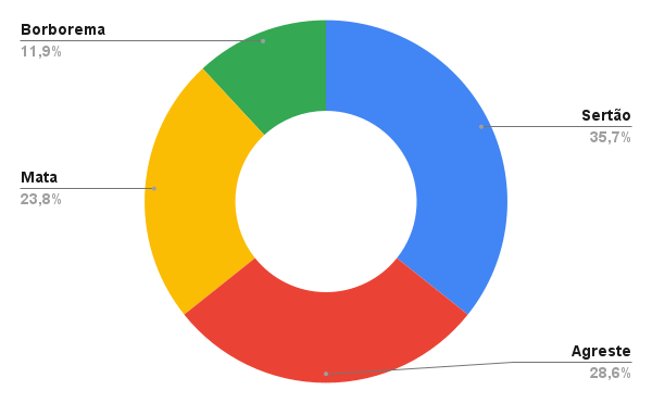 A região do Sertão lidera com 15 gestoras, seguida pelo Agreste com 12, Mata com 10 e Borborema com 5.