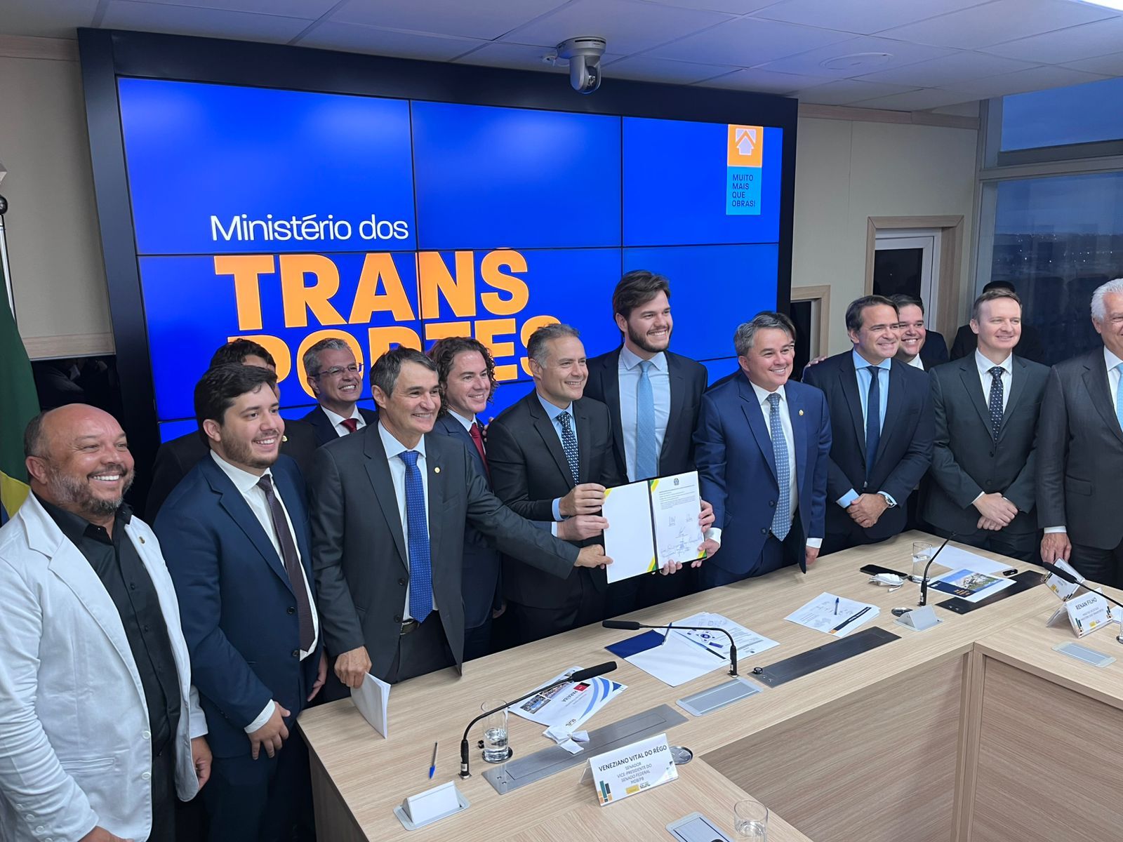 Durante solenidade no Ministério dos Transportes na tarde e noite desta terça-feira (10), o Ministro dos Transportes, Renan Filho, garantiu ao Vice-Presidente do Senado Federal, Senador Veneziano Vital do Rêgo (MDB-PB), e aos demais presentes, a destinação de R$ 100 milhões para a adequação da malha ferroviária que irá receber o Veículo Leve Sobre Trilhos - VLT de Campina Grande.